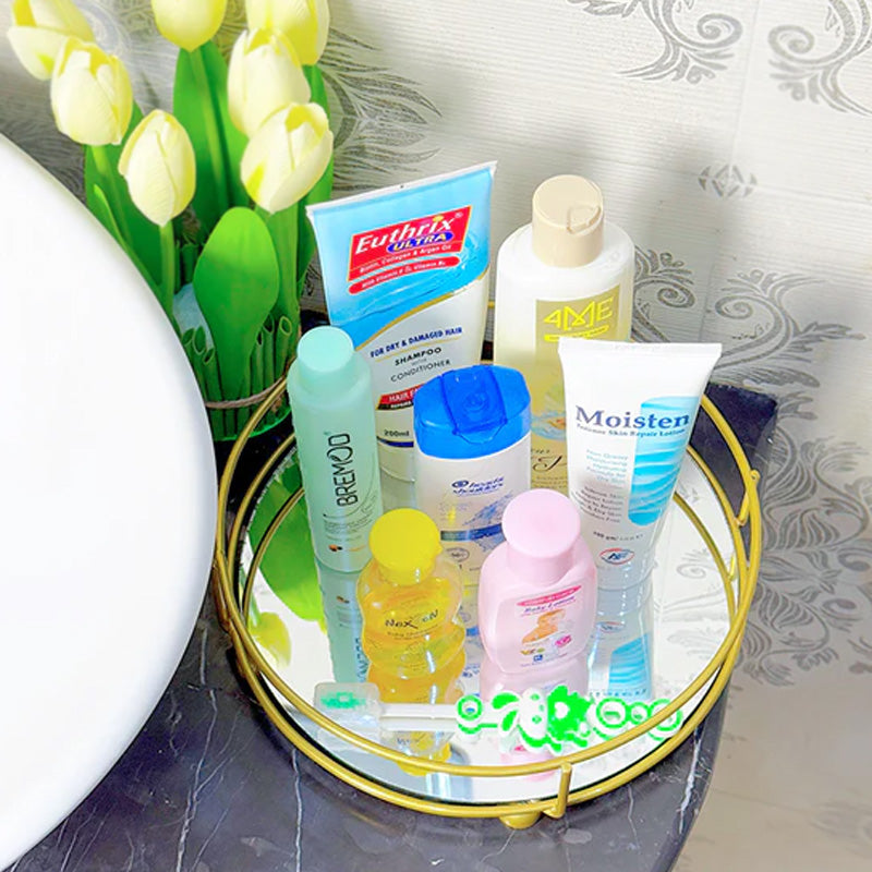 - This Round Metal Vanity Mirror Tray is the perfect blend of style and functionality, making it a must-have for home decor lovers.