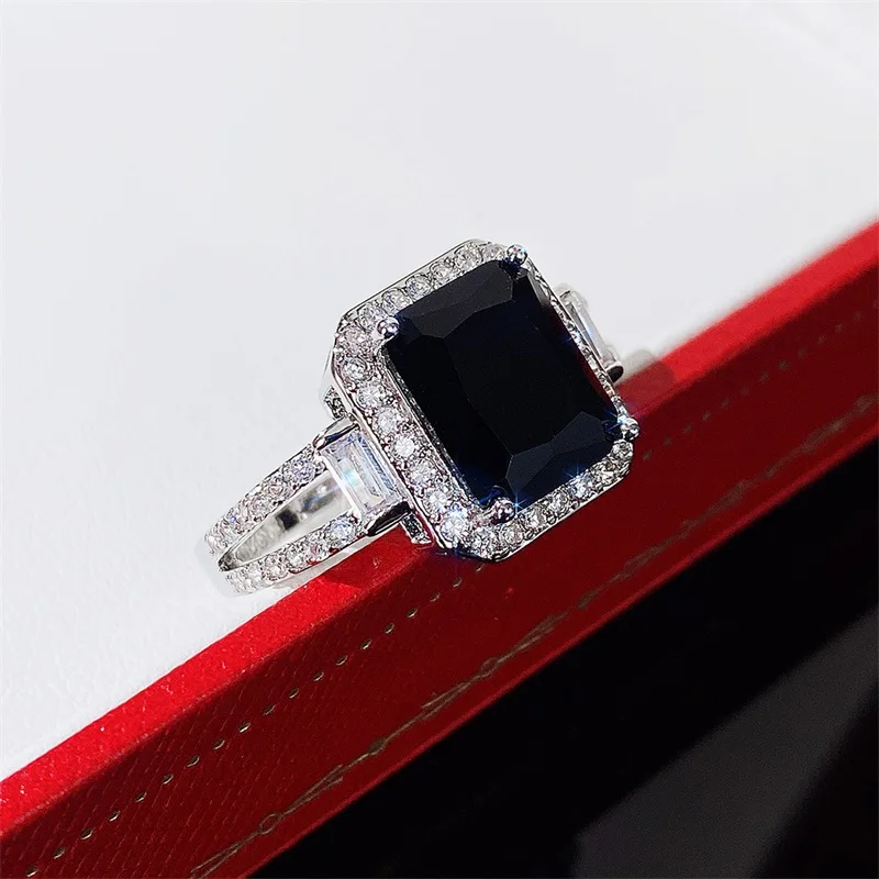 Huitan Temperament Men Wedding Finger Rings with Black Crystal Zirconia Trendy Party Accessories Fashionable Design Jewelry Gift